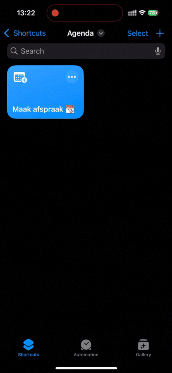 2. waarna de shortcut een screenshot maakt van je scherm en er tekst uit haaltOf als je de afspraak offline of op een ander scherm leest, dan